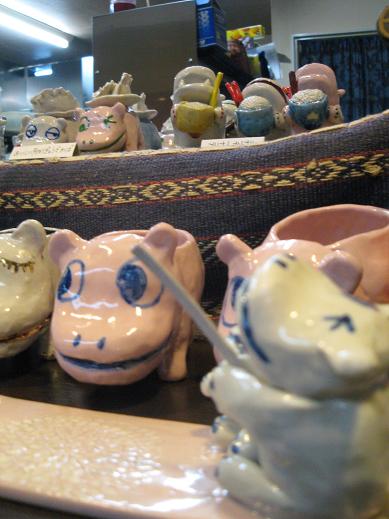 きのこさんはまあ、その名の通り、きのこが大好きな方だそうで・・・・・・・・きのこの箸置きや灰皿を作っていましたよ~。
