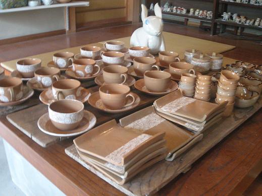 喫茶店なので、コーヒーカップはもちろんのこと、ケーキ皿、ミルクピッチャー、シュガーポットなどなどいろいろ作っています。(まだまだ沢山作らねば!!という感じです)