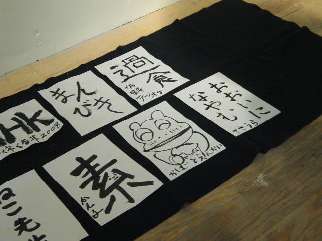 そこでは、「書初め展」をやっていて、見に来た方々が書初めをしていっているので、早速私たちも挑戦しました~!
