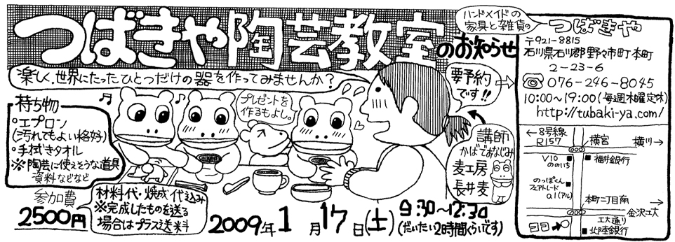 参加費は2000円(焼成代、材料費含みます)